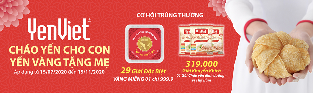 Cùng tham gia chương trình “CHÁO YẾN CHO CON, YẾN VÀNG TẶNG MẸ”, giành ngay hàng ngàn cơ hội trúng những phần thưởng giá trị.