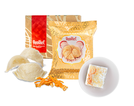 Thành phần: Tổ yến (40%), đông trùng hạ thảo (30%), đường phèn.