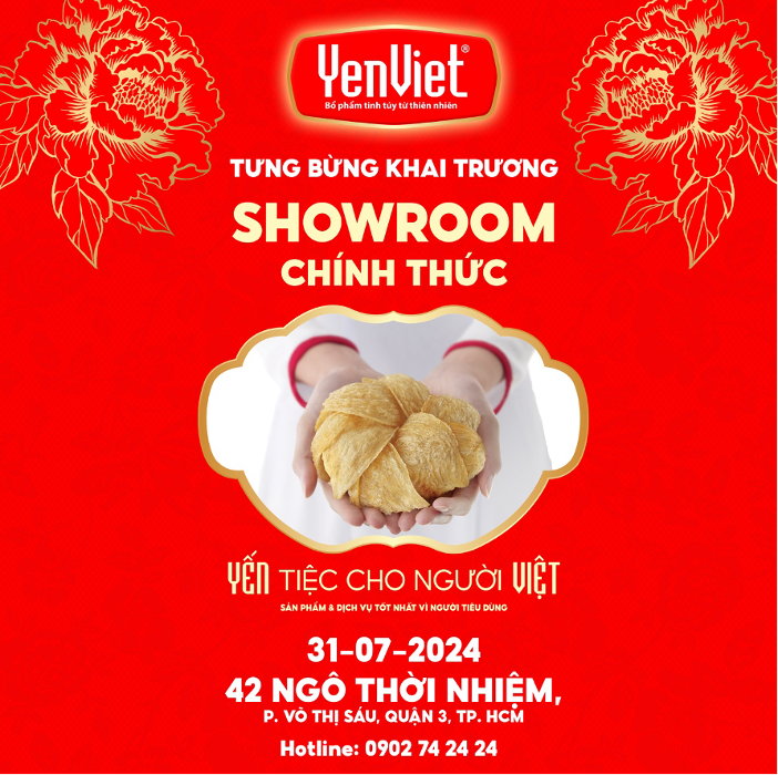 Là công ty hàng đầu trên thị trường Tổ Yến cao cấp, với hệ thống phân phối rộng khắp trên toàn quốc. Nhằm nâng cao hơn nữa chất lượng phục vụ cho khách Khách Hàng, Công ty CP Yến Việt sẽ khai trương Showroom chính thức đầu tiên toạ lạc tại trung tâm Thành phố Hồ Chí Minh.